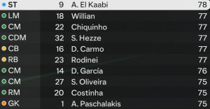 Αρκετοί από το περσινό ρόστερ έχουν ανεβάσει τα στατιστικά τους με καλύτερο τον Τζολάκη (από 73 σε 79), τον Ελ Καμπί (από 78 σε 80) και τους Ρέτσο (από 75 σε 77), Ροντινέι (77 σε 79), Πιρόλα (από 71 σε 75).