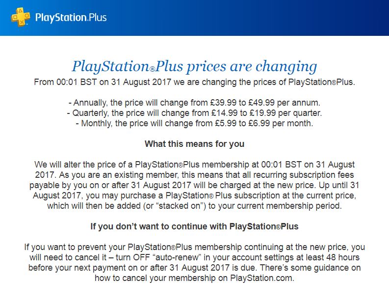 Η επόμενη μεγάλη αλλαγή στην υπηρεσία ήταν η αύξηση της τιμής που ξεκίνησε τον Σεπτέμβριο του 2017. Η ετήσια συνδρομή από €49.99 έγινε €59.99, η τρίμηνη από €19.99 έγινε €24.99, και η μηνιαία από €6.99 έγινε €7.99. Το επόμενο διάστημα κύλησε με ποιοτικούς τίτλους για το PS4 και σχετικά αδιάφορους για το γερασμένο PS3 και το ξεχασμένο από όλους PS Vita.