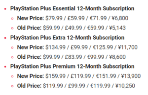 Παρόλο που η νέα δομή των tiers προσέφερε περισσότερες επιλογές, η Sony προχώρησε σε μια νέα, σημαντική αύξηση τιμών τον Σεπτέμβριο του 2023. Αυτή η αύξηση επηρέασε τις ετήσιες συνδρομές σε όλα τα tiers, ανεβάζοντας το κόστος. Για παράδειγμα, η ετήσια συνδρομή του Essential αυξήθηκε από €59.99 σε €71.99 (ή σε αντίστοιχα αυξημένες τιμές στις διάφορες περιοχές), του Extra από €99.99 σε €125.99 και του Premium από €119.99 σε €151.99.