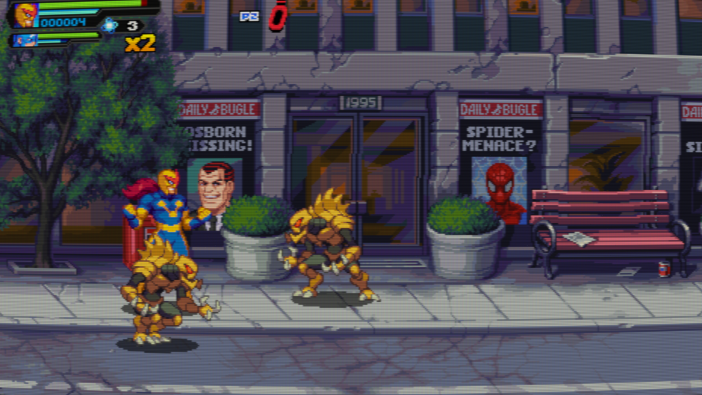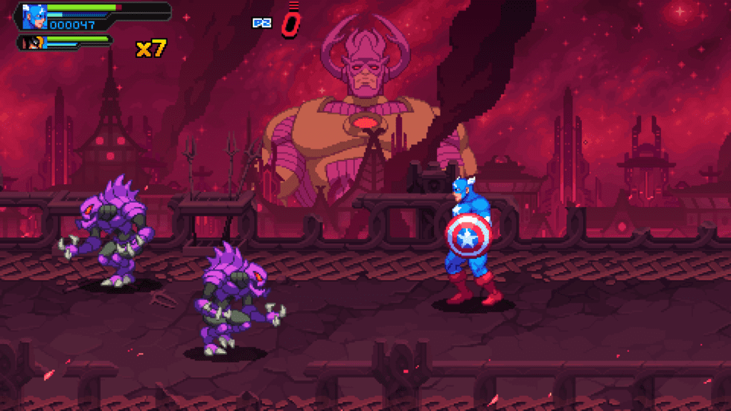 Η διάρκεια του κυμαίνεται γύρω στις 5 ώρες, διάρκεια τίμια θα έλεγα και με ποικιλία στις πίστες και ήρωες. Ο κάθε ήρωας κινείται και μάχεται διαφορετικά, αν και προφανώς δεν υπάρχει η τόση ποικιλία που θα θέλαμε. Ενώ ο αριθμός των ηρώων είναι ικανοποιητικός με roster διάσημων και μη χαρακτήρων (Spider-Man, Wolverine, Captain America, Iron Man, Storm, Phoenix (Jean Grey), Venom, Rocket Raccoon, Black Panther, She-Hulk, Cosmic Ghost Rider , Nova, Silver Surfer, Beta Ray Bill , Phyla-Vell), χωρίζονται περισσότερο σε κατηγορίες με ήρωες που πετάνε ή μη, χαρακτήρες που έχουν projectiles ή μάχονται από κοντά. Μάλιστα θεωρώ πως κάποιοι, όπως ο Wolverine είναι και λίγο “σπασμένοι”, καθώς μπορούμε να κάνουμε γρήγορες επιθέσεις από τη μία μεριά της οθόνης ως την άλλη και σπάνια να προλαβαίνουν να μας χτυπήσουν οι εχθροί. Οι πίστες επίσης έχουν ποικιλία με ωραίες τοποθεσίες, βέβαια η διαδρομή που ακολουθούμε είναι απολύτως τυπική και δεν ξεφεύγει από τα στενά όρια του είδους, με γραμμική πορεία, κάποια κουτιά για σπάσιμο με health, μηδέν διαδραστικότητα με το background και γενικά λίγο διεκπεραιωτικά. Μπορεί το background ορισμένες φορές να τραβάει το μάτι, αλλά αυτό έχει να κάνει περισσότερο με την Pixel art καλλιτεχνική διεύθυνση του παιχνιδιού.