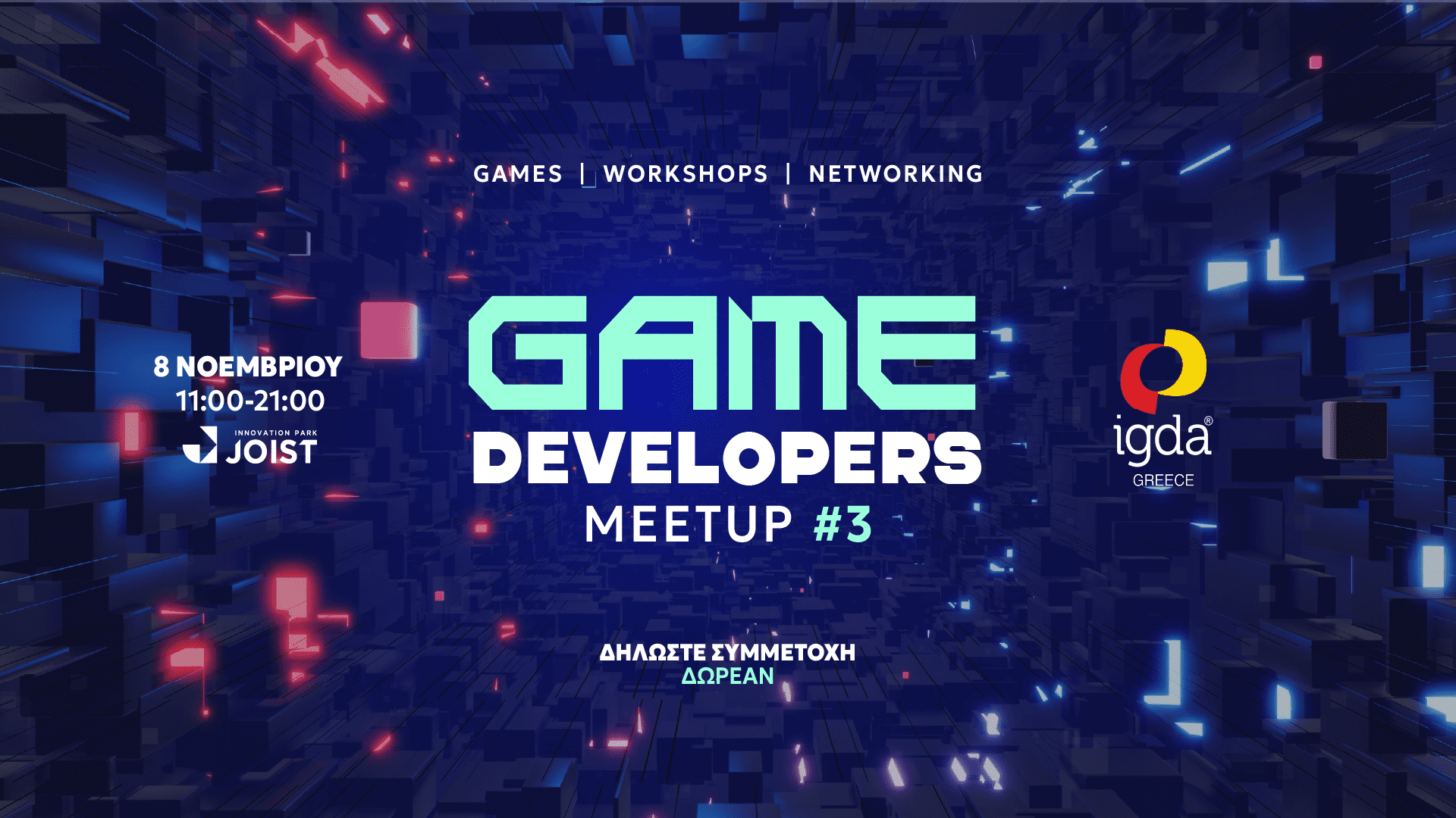 - Διοργανωτές: IGDA Greece & JOIST Innovation Park.